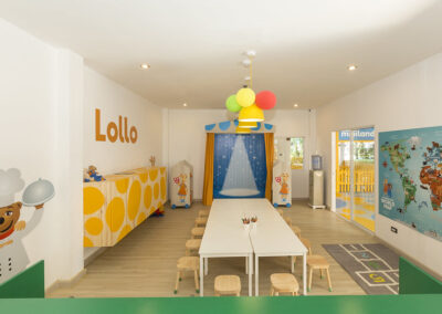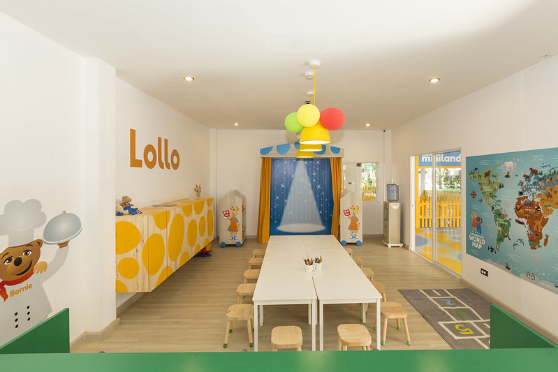 Poolområdet är en av hotellets största fördelar. Här finns flera pooler, rutschkanor och gott om plats för både lek och avkoppling. För barn finns dessutom ett lekrum med pingis och tv-spel samt en barnklubb där de kan träffa maskotarna Lollo & Bernie.