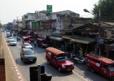 Med sin stora mångfald är Chiang Mai en stad som verkligen väcker intresse. I stadens livliga centrum är trafiken tung på de större vägarna, för att bli lugnare i stadens äldre delar innanför den omgivande floden. Här finns mindre gator där billiga hotell, mysiga caféer och massageställen ligger tätt. Stadens rika kultur gör sig ständigt påmind, och längst med gatorna ligger trevliga bokaffärer, vackra tempel och små butiker med lokalt hantverk sida vid sida.